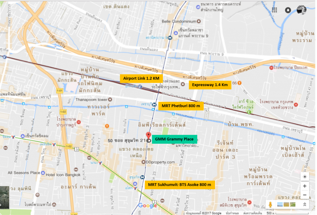 สำหรับทำเลของ ตึกแกรมมี่ ถือว่ามีความสะดวกสบายครบครัน ถือว่า Support การเดินทางทั้งทางรถยนต์ และการคมนาคมแบบสาธารณะ ไม่ว่าจะเป็นรถไฟฟ้าใต้ดิน , แอร์พอร์ต ลิ้ง , รถเมล์ หรือว่าจะเป็นรถไฟฟ้าบนดิน