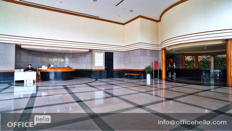 ตัวห้องของอาคาร SG Tower จะเป็นห้องขนาดใหญ่ พื้นที่ประมาณ 200 ตารางเมตร ขึ้นไปโดยประมาณ ความสูงของฝ้า อยู่ที่ 2.5-2.6 เมตร ตัวพื้นเป็นปูนเปลือย แอร์เปิด 07.30-17.30 น. จันทร์ ถึงศุกร์ หากองค์กรไหนจะทำโอที จะเสียค่า โอทีแอร์ ชั่วโมงละ 1,200 บาท พร้อมให้สิทธิจอดรถ 1 คัน ต่อพื้นที่เช่า 100 ตารางเมตร เช่าเพิ่มอยู่ที่ 2,500 บาท ต่อคัน ห้องรายล้อมด้วยกระจก บางห้องจะเห็นวิวเป็นอาคารในย่านราชดำริ – หลังสวน บางห้องจะเห็นวิวสนามโปโล สปอร์ตคลับ หรือสวนลุมพินี