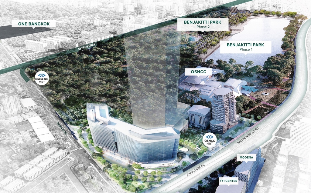 ทำเลที่ตั้ง อยู่ใกล้กับศูนย์ประชุมแห่งชาติสิริกิต จุดตัดถนนพระราม 4 และถนนรัชดาภิเษก ตรงข้ามกับ FYI Centre