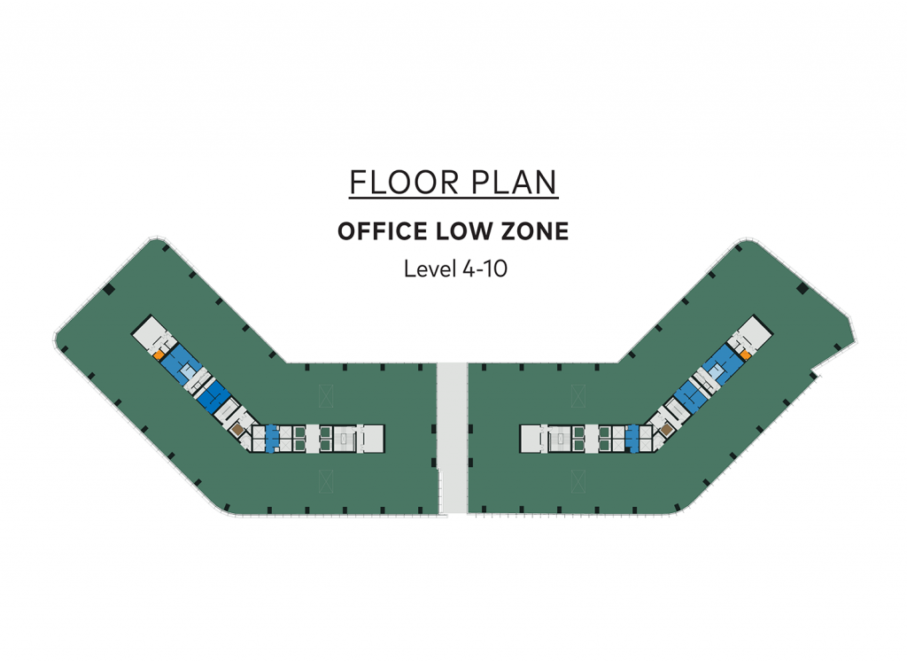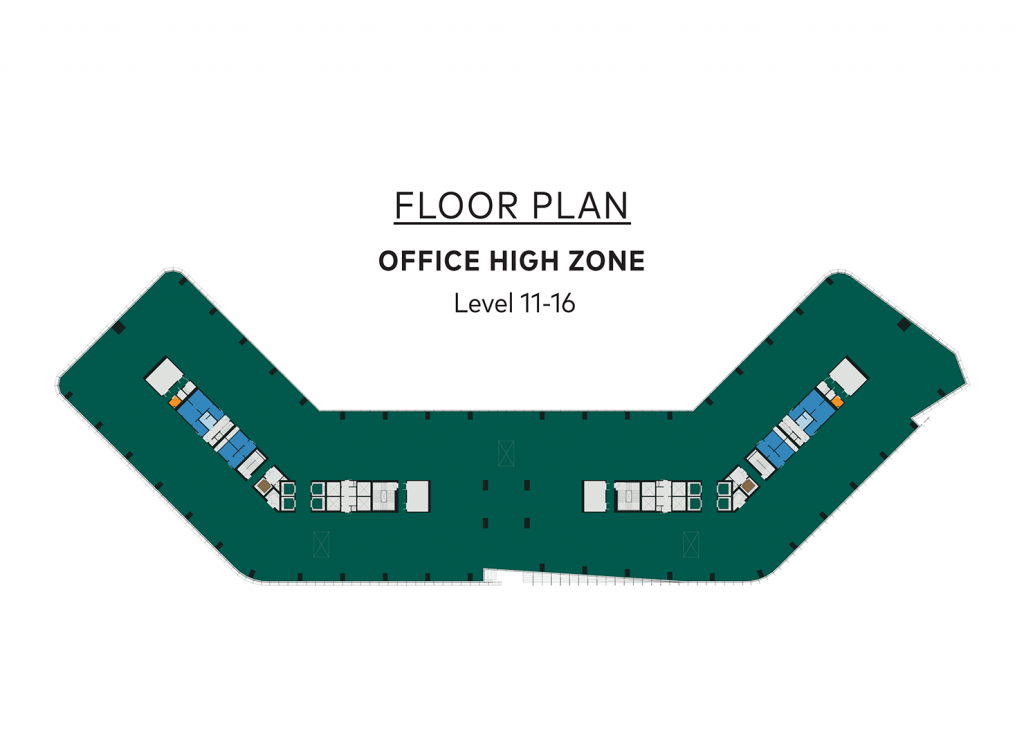 Floor plan ของอาคาร the parq / เดอะ ปาร์ค จะเป็นรูป คล้ายๆ ตัว ยู มีลิฟหลักๆ อยู่ 2 ด้าน และไม่มีเสาระหว่างกลาง ทำให้การแบ่งพื้นที่ และการใช้สอย หรือการออกแบบ สำนักงาน ง่ายขึ้น