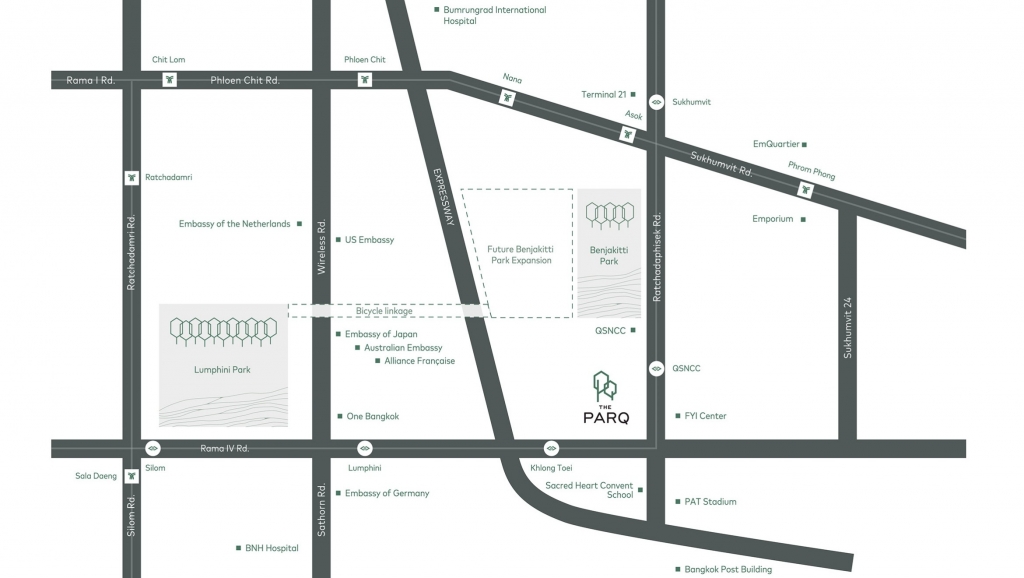 - ใกล้สวนขนาดใหญ่ ถึง 2 แห่งได้แก่ สวนเบญจกิตติ และสวนลุมพินี