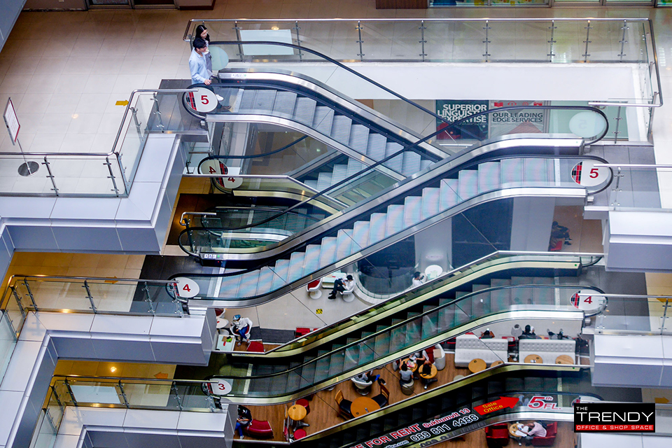 ตัวอาคารโซนสำนักงานสูง 29 ชั้น ลักษณะภายนอกทาด้วยสีเทาตัดกับสีแดง โดยชั้น 1-10 เป็นส่วนของ พลาซ่า (ใช้ลิฟท์แก้ว ) ส่วนชั้น 11 -29 เป็นส่วนของสำนักงาน ต้องใช้ลิฟท์ทางด้านหลัง พร้อมทั้งนี้ ยังมีบันไดเลื่อนไว้คอยบริการ ชั้น 1-5 ตัวอาคารมีพื้นที่เช่ากว่า 28,000 ตารางเมตร มีร้านค้า ร้านอาหารไว้บริการ ไม่ว่าจะเป็น ร้านถ่ายเอกสาร โรงเรียนสอนภาษา ร้านกาแฟ ร้านข้าว เป็นต้น ความสูงของเพดาน ประมาณ 2.4 เมตร